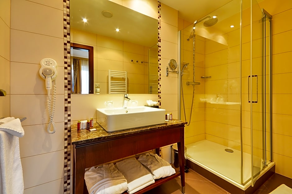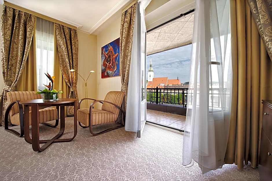 Spacious junior suite with a big bathroom. It offers a French balcony with river view, free WiFi and wired internet access. The suite also features a coffee and tea set and a working desk.
